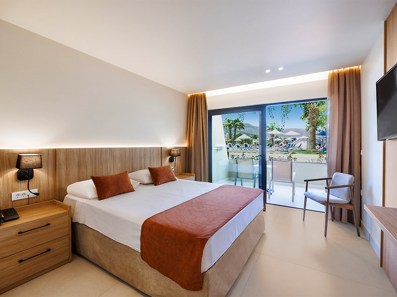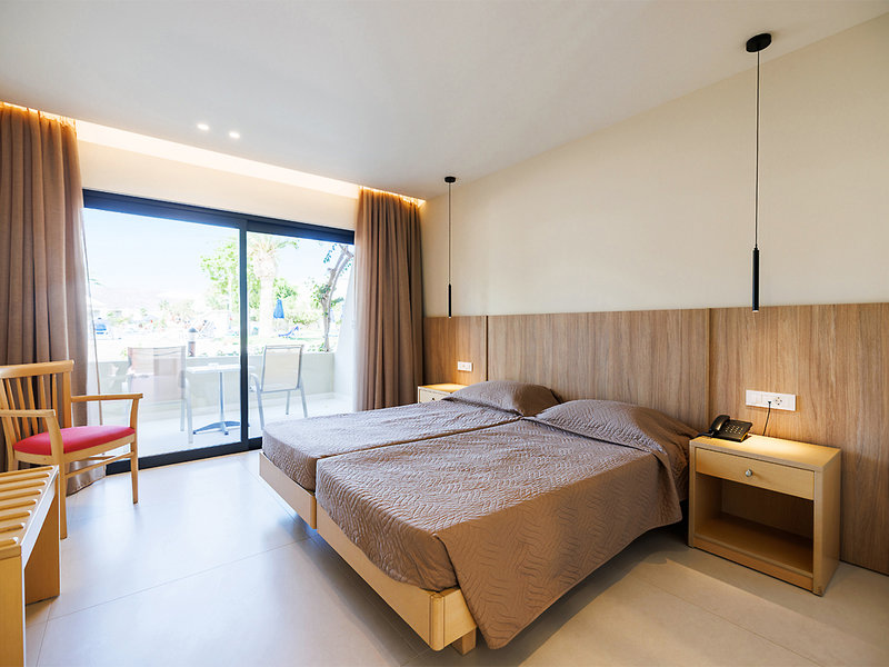 Wohnen: Doppelzimmer (DZ, ca. 20 qm), komplett renoviert, geschmackvoll eingerichtet, Klimaanlage (warm/kalt), Minikühlschrank, TV, Tel., WLAN, Mietsafe. Bad mit bodengl. Dusche, WC, Föhn. Balkon/Terrasse. Gartenblick. Wahlweise Meerblick (DZM, ca. 23 qm).
