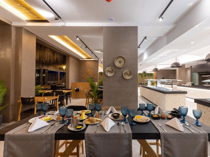 - Hlavná reštaurácia: Kuchyňa: grécka, medzinárodná, stredomorská, detský bufet: bez poplatku, požiadavka a rezervácia nie je nutná, vegetariánske jedlá: bez poplatku, vyžiadanie a rezervácia nutná, bufet, za poplatok
