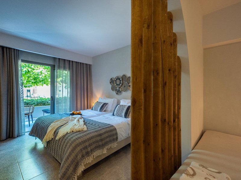 - Junior Suite garden view (JSX2), Juniorsuite, Gartenblick, ca. 35 m², letzte Komplettrenovierung 2021, Gesamtanzahl der Räume in diesem Zimmertyp: 2, Aufteilung wie folgt: kombiniertes Wohn-/Schlafzimmer, 2 Einzelbetten, 2 Schlafsofas, Babybett: ohne Gebühr, Anfrage notwendig, Reservierung nicht notwendig, Klimaanlage: ohne Gebühr, individuell regelbar, kalt, warm, Fußboden: Fliesenboden, Safe: ohne Gebühr, Bügeleisen, Bügelbrett, Kaffee-/Teezubereiter, Wasserkocher, Minibar: gegen Gebühr, Telefon, Internet: WLAN/WiFi: ohne Gebühr, Fernseher: Flatscreen, deutsches Programm, Sat-TV, Dusche, WC, Bademantel: ohne Gebühr, Slipper: ohne Gebühr, Föhn, Kosmetikspiegel, Terrasse: mit Sitzgelegenheit