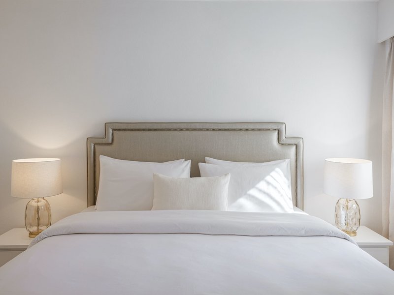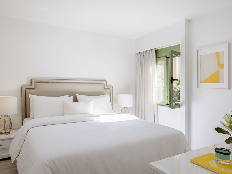 Biely mezonet s 1 spálňou: Izby „Biely mezonet s 1 spálňou“, rozložené na dvoch úrovniach a nachádzajúce sa v štvrti Casa Serena, sa nachádzajú na prízemí, 1. alebo 2. poschodí a sú vybavené kombinovanou obývacou/spacou časťou s dvoma samostatnými lôžkami, satelitnou TV, bezplatným Wi-Fi pripojením na internet, jedálenským kútom s kuchynským kútom, chladničkou a príslušenstvom na prípravu kávy/čaju, trezorom, ako aj samostatnou spálňou s manželskou posteľou alebo samostatnými lôžkami, kúpeľňou s vaňou/WC a sušičom vlasov a balkónom alebo terasou s výhľadom do záhrady (M2).