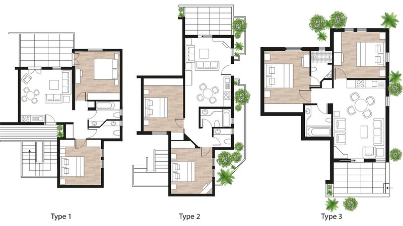 Biele štúdio: Komfortné „Biele štúdiá“, ktoré sa nachádzajú v štvrti Casa Serena, sa nachádzajú na prízemí a sú vybavené kombinovanou obývacou/spacou časťou s dvoma samostatnými lôžkami, satelitnou TV, bezplatným Wi-Fi pripojením na internet, klimatizáciou, jedálenským kútom s kuchynským kútom, chladničkou a príslušenstvom na prípravu kávy/čaju, trezorom, ako aj samostatnou spálňou s manželskou posteľou alebo samostatnými lôžkami, kúpeľňou s vaňou/WC a sušičom vlasov a terasou s výhľadom do záhrady (AST).