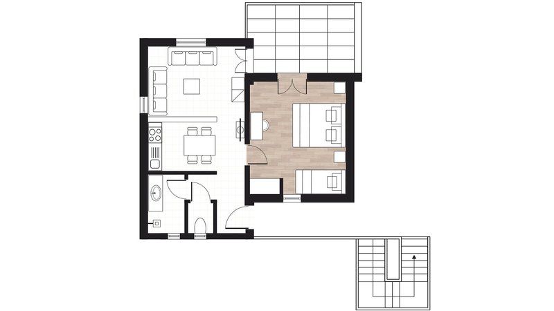 Prípadne je možné si ho rezervovať aj ako 1-izbový apartmán v štvrti Villa Adele (A1T).