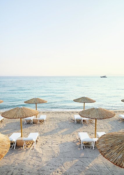- Pláž Perivolia: piesok, okruhliaky, schody na pláž, verejná, verejná s vlastnou hotelovou časťou, ležadlá: zdarma, slnečníky: zdarma