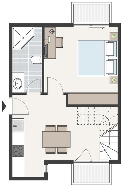 - Plaza Studio (STX1): Viele Studios verfügen über 2 Etagen (Maisonette, offen gestaltet), einige wenige Studios bestehen aus einem großen Wohn-/Schlafbereich auf einer Ebene, ein Kundenwunsch ist über die Bemerkungszeile möglich.