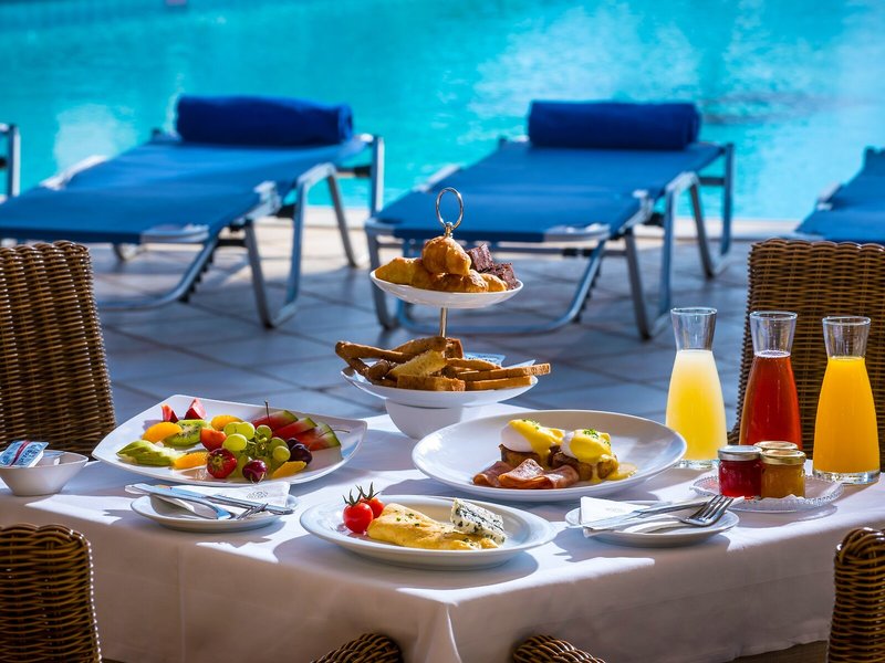 Essen & Trinken: Die gastronomischen Einrichtungen umfassen ein Restaurant, ein Café und eine Bar. Der Club bietet als buchbare Verpflegungsleistungen Übernachtung inkl. Frühstück und Halbpension. Frühstück, ein Mittagessen à la carte und Abendessen locken mit kulinarischen Genüssen und abwechslungsreichem Speisenangebot. Glutenfreie Mahlzeiten, vegetarische Gerichte und laktosefreie Kost werden auf Wunsch zubereitet. Darüber hinaus stellt die Unterbringung Snacks bereit. Eine besondere Attraktion ist das Showcooking. Gegen Gebühr gibt es auch alkoholfreie Getränke und internationale Marken.