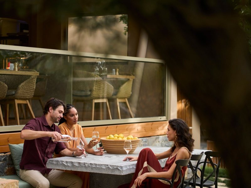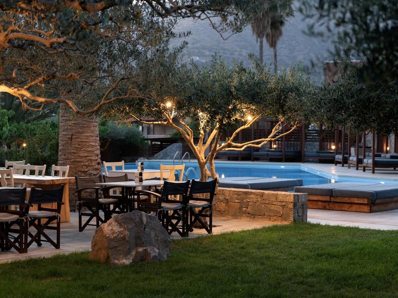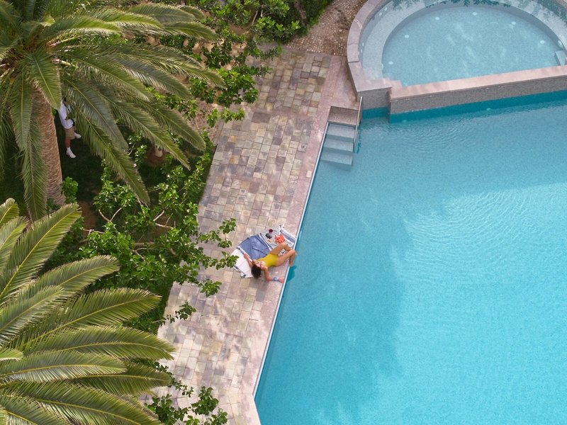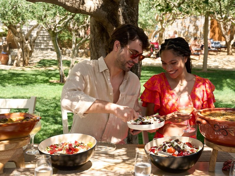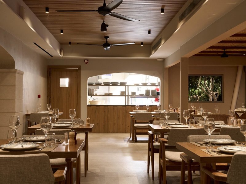 - Hlavná reštaurácia: Kuchyňa: Grécka, Stredomorská, regionálna, ryby/morské plody, grilované jedlá, bufet, show cooking, s terasou, pri bazéne, vysoká stolička
