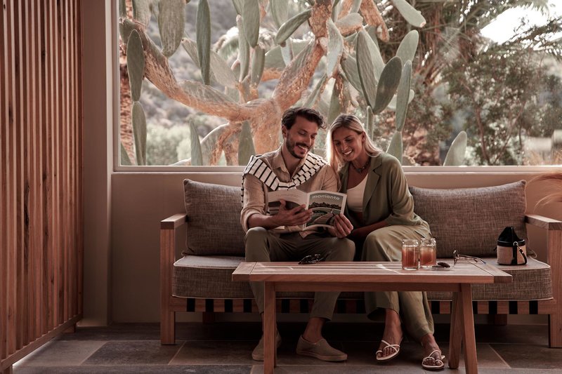 Junior suita Chill: Junior suity „Chill“ sa nachádzajú na prízemí a sú zariadené v teplých, prírodných farbách a materiáloch. Každá izba má vlastnú súkromnú záhradu s ležadlami a útulnou hojdacou sieťou.
