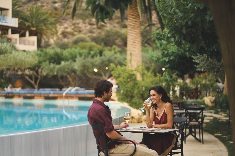 Das moderne und frisch renovierte Nichtraucher-Buffetrestaurant mit 3 Show-Cooking Stationen lädt mit seiner Außenterrasse mit Olivenbäumen, Palmen und duftenden Sträuchern zum Verweilen ein. 2024 öffnete das À-la-carte-Restaurant "Tomatini" seine Pforten, in welchem die Speisen mit selbst angebautem Gemüse zubereitet werden und als Set-Menü basierend auf der griechischen und kretischen Küche serviert werden.