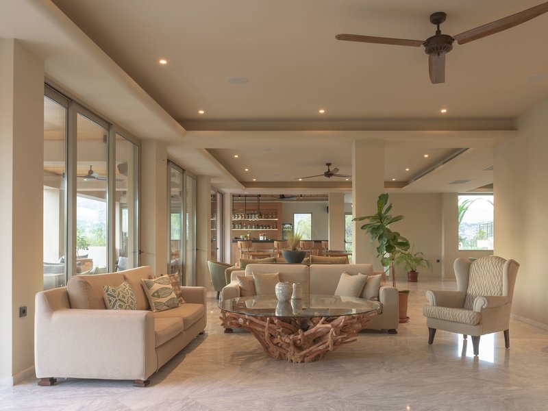 Vybavenie: Tento veľmi príjemný a starostlivo spravovaný hotel s celkovým počtom 152 izieb pozostáva z hlavnej budovy a 15 prístavieb, ktoré sú rozmiestnené v krásne upravenej, priestrannej záhrade. Ponúka hosťom vstupnú halu s 24-hodinovou recepciou (v nemeckom a anglickom jazyku), „Galini Lobby Bar“ s balkónom s úžasným výhľadom na záliv, more a dedinku Agia Galini, bar pri bazéne v tieni paliem (ideálny na večerné posedenie), úschovňu batožiny, malú knižnicu a bezplatné parkovisko monitorované kamerovým systémom. V celom objekte je k dispozícii Wi-Fi pripojenie na internet.