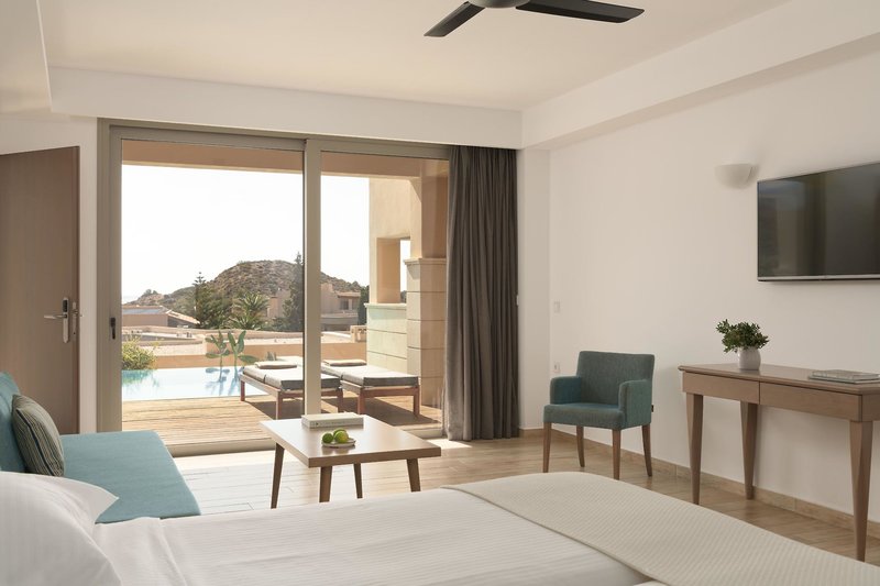 Juniorsuite privater Pool: Verfügen über die gleiche hochwertige Ausstattung wie die Juniorsuiten, jedoch zusätzlich Pooltücher, bieten einen privaten Pool mit Terrasse und Liegestühlen (ZJP). Wahlweise auch mit Meerblick (SI2) buchbar.