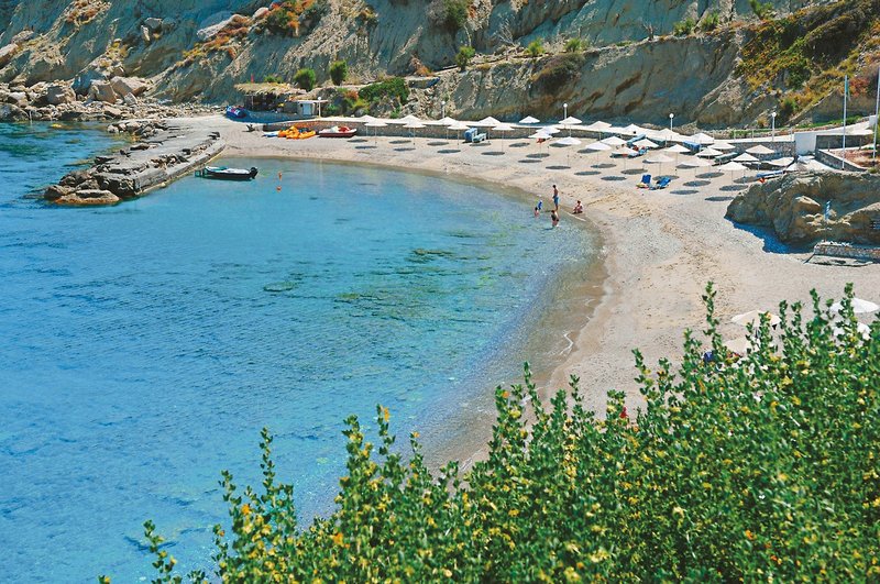 - Sand-/Kieselstrand: gehört zur Anlage, ca. 700 m lang, Sonnenschirme, Liegen