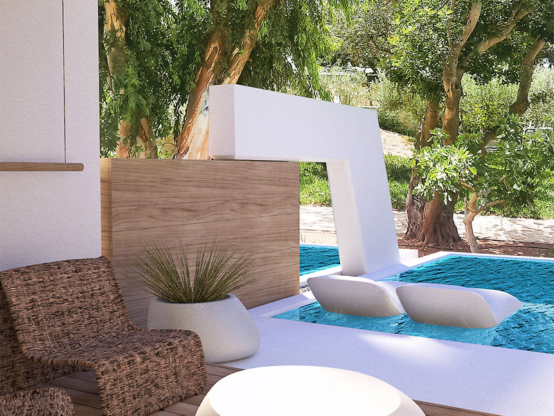 Bungalov izba (BUP, cca 26 m2), príp. Rozkladacia pohovka, klimatizácia, chladnička, TV (42 palcov), telefón, WiFi, trezor. Sprcha, WC, fén. Terasa s vlastným bazénom, výhľad na more. Max. 3E/2E+2K