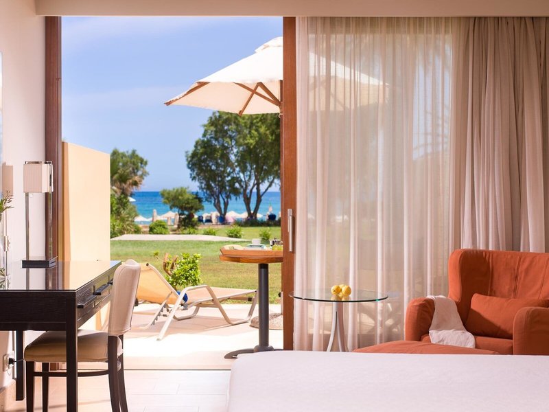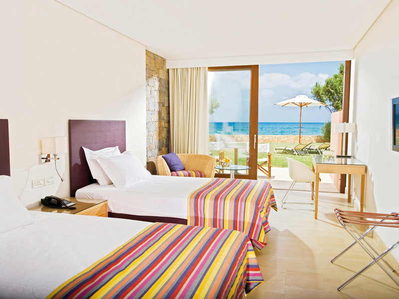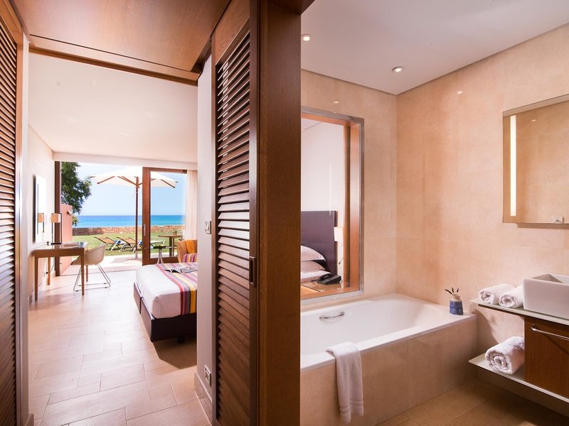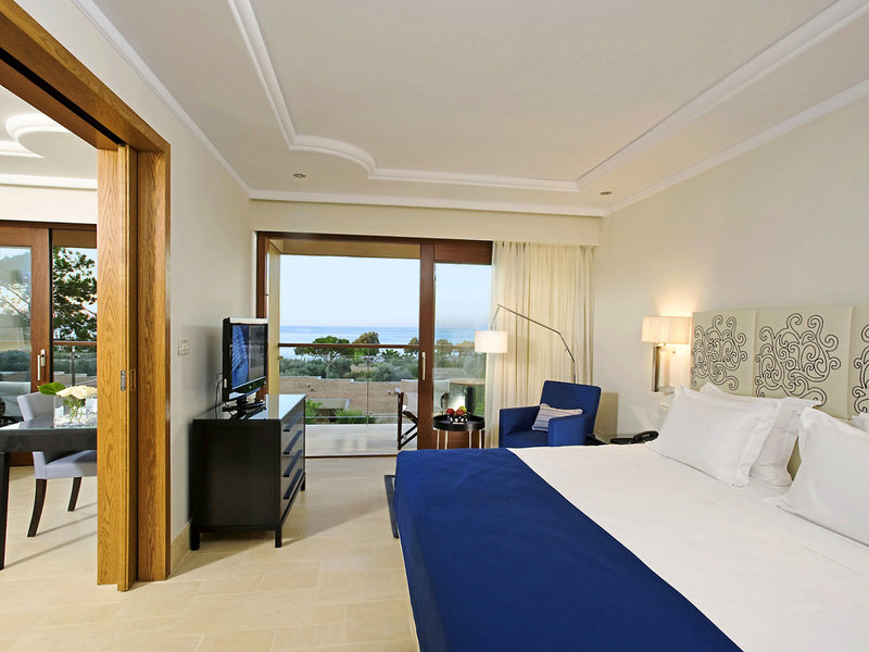 - Superior Family Suite sea view (FZM1), Suite, im Hauptgebäude, im Nebengebäude, Meerblick, ca. 46 - 57 m², letzte Komplettrenovierung 2008, letzte Teilrenovierung 2015, Gesamtanzahl der Räume in diesem Zimmertyp: 2, Aufteilung wie folgt: bestehend aus 2 Zimmern, optisch getrennt durch Schiebetür, 1 Doppelbett, 1 Schlafsofa, Babybett: ohne Gebühr, Anfrage nicht notwendig, Reservierung notwendig, Klimaanlage: ohne Gebühr, individuell regelbar, zentral gesteuert, kalt, warm, Fußboden: Fliesenboden, Safe: ohne Gebühr, Sitzecke, Kühlschrank: ohne Gebühr, Telefon, Internet: WLAN/WiFi: ohne Gebühr, Fernseher: Flatscreen, Sat-TV, separate Dusche, Badewanne, WC, Bademantel: ohne Gebühr, Slipper: ohne Gebühr, Föhn, Balkon oder Terrasse: mit Sitzgelegenheit