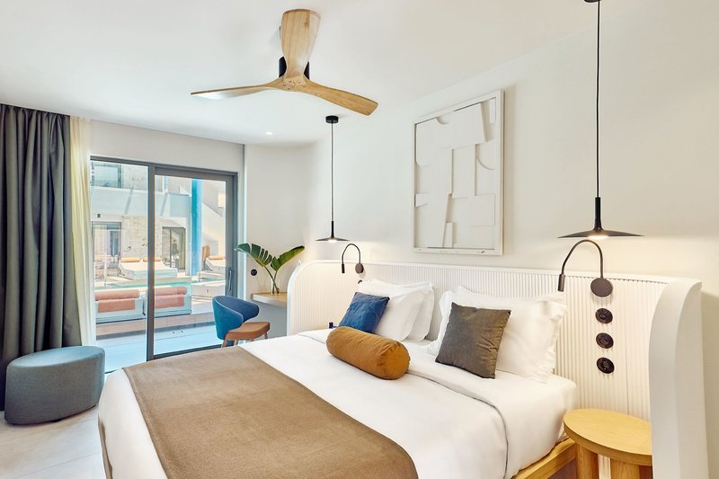 Juniorská suita Pure Luxe s prístupom do bazéna: Tieto suity majú rovnaké vybavenie ako juniorské suity, ale majú terasu so súkromnou slnečnou terasou a priamym prístupom k bazénu (SUJ; ďalšie parcely je možné rezervovať pod kódom hotela HER201: A2Q).