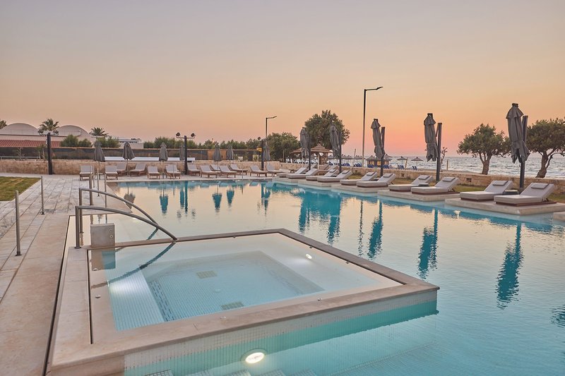 Stravovanie: Polpenzia: Bohaté raňajky formou bufetu (7:30-10:30) so širokým výberom čerstvo pripravených jedál, malé raňajky pre skoré vtáčatá (7:00-7:30) a malé raňajky pre neskoré vtáčatá (10:30-11:00). Večer (18:30-21:30) je k dispozícii jedinečný a exkluzívny à la carte zážitok, ktorý je poctou gréckej a krétskej kulinárskej kultúre. Rezervácia na večeru je povinná a na výber je 5 tematických reštaurácií.