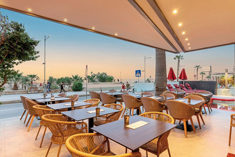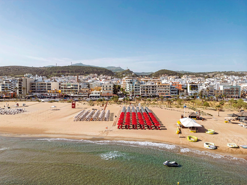 - Sandstrand: öffentlich, ca. 7 km lang, Sonnenschirme (kostenpflichtig), Liegen (kostenpflichtig), Kosten belaufen sich auf einen Mindestverzehr von ca. 6 Euro