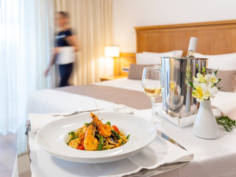 Essen & Trinken: Es stehen verschiedene gastronomische Einrichtungen zur Auswahl, wie ein Restaurant, ein Café und eine Bar. Die Unterbringung bietet als buchbare Verpflegungsleistungen Halbpension und Vollpension. Zum Frühstück bedienen sich die Gäste am reichhaltigen Buffet. Verschiedene Gerichte à la carte können zum Mittagessen und Abendessen gewählt werden. Glutenfreie Mahlzeiten, vegetarische Gerichte und Kindermenüs werden auf Wunsch zubereitet. Darüber hinaus stellt das Haus Snacks bereit.