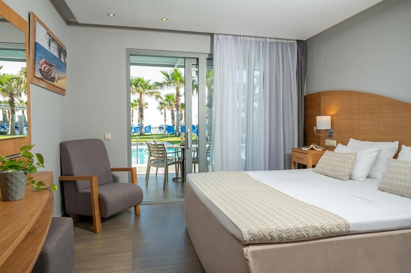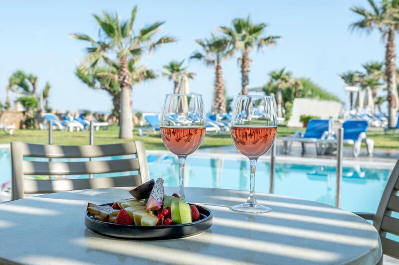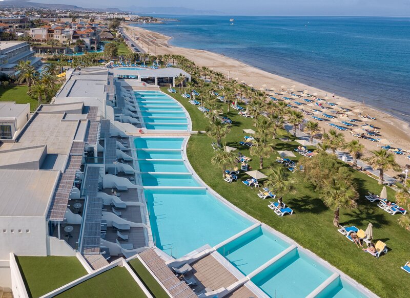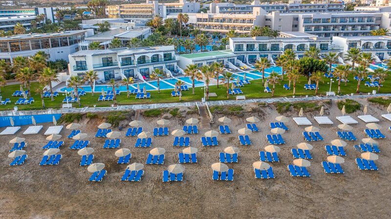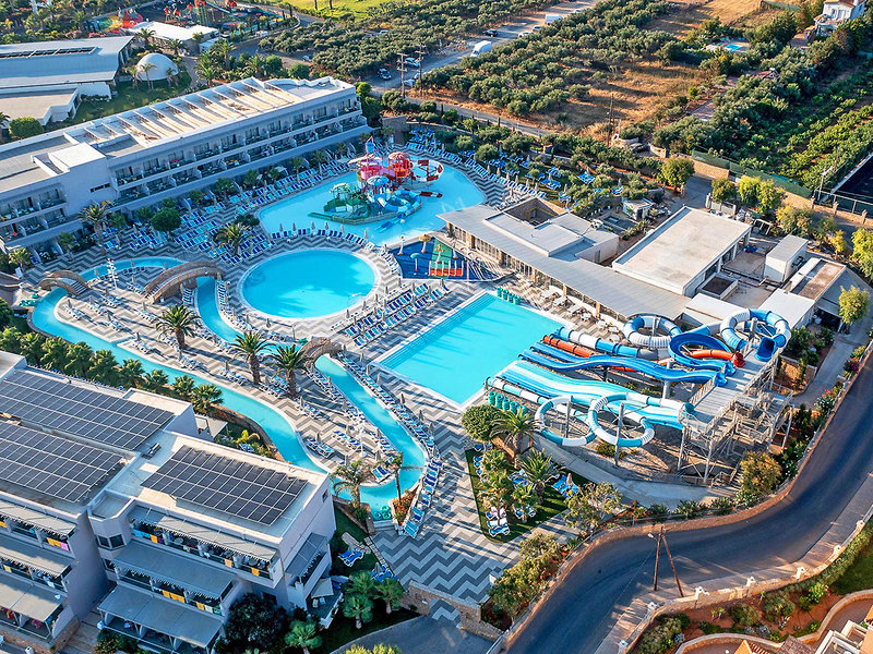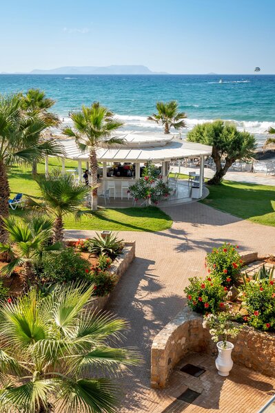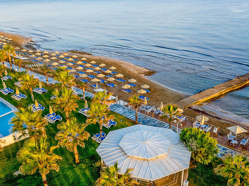 Poloha: Priamo na priestrannej, širokej piesočnatej pláži, len kúsok od mestečka Anissaras, ktoré láka k leňošeniu s útulnými tavernami a malými obchodíkmi (cca 500 m). Živé mesto Hersonissos, známe svojimi početnými reštauráciami, barmi a rôznymi nákupnými a zábavnými možnosťami, je vzdialené približne 5 km a je ľahko dostupné. Autobusová zastávka s dobrým spojením sa nachádza v bezprostrednej blízkosti hotela.