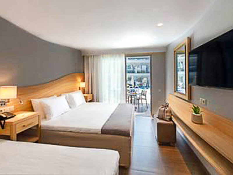 Familienzimmer (FSG, ca. 35 qm; unter HER319), sep. Schlafzimmer, Klimaanlage, Kühlschrank, Großbild-TV, Telefon, Safe. 2 Badezimmer, Dusche, WC, Föhn. Terrasse, wahlw. mit privatem Pool (FZP). Max. 3E+2K