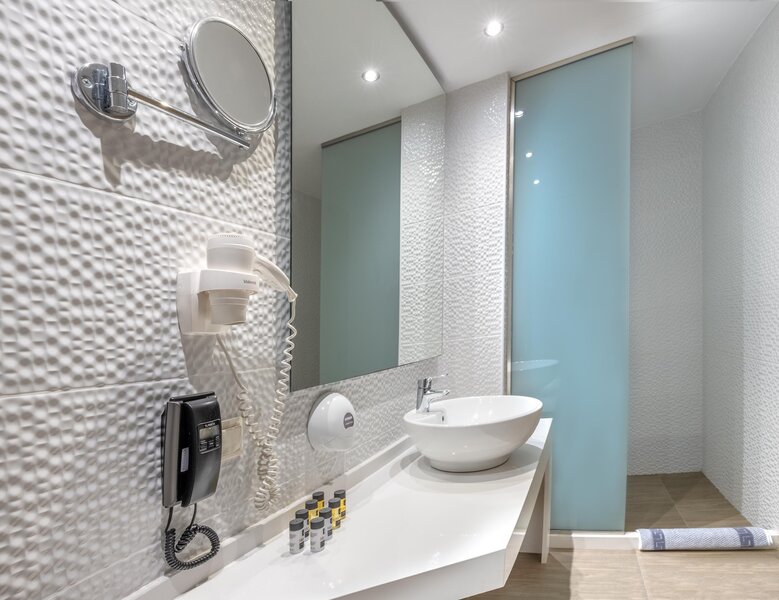Wohnen: Doppelzimmer (DZ, ca. 23 qm), Klimaanlage, Kühlschrank, Großbild-TV, Telefon, WLAN, Safe. Dusche, WC, Föhn. Balkon, wahlw. Meerblick (DZM). Max. 3E, zur Alleinnutzung buchbar (EZS)
