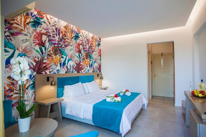 Ausstattung: Das Hotel verfügt über insgesamt 76 Zimmer, die sich auf 2 Etagen verteilen. Zu den weiteren Einrichtungen zählen ein Empfangsbereich mit 24-h-Rezeption, Fitnessraum, Lifts, Wi-Fi (inklusive), Sat.-TV-Ecke, Internetecke, Parkplatz, Bibliothek, Buffetrestaurant mit Terrasse mit Show-Cooking, eine À-la-carte-Taverne am Pool (nur tagsüber geöffnet) sowie eine Bar mit Außen-Lounge. Im schön angelegten Außenbereich des Hotels befindet sich ein bezaubernder Garten mit Palmen und bunten Blumen sowie der Süßwasser-Swimmingpool mit Sonnenterrasse und eine Poolbar. Sonnenliegen und Schirme sind am Pool inklusive und am Strand gegen Gebühr erhältlich.