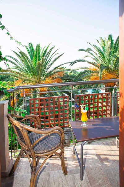 Dvojlôžková izba s výhľadom na bazén/záhradu: Vkusne zariadené izby s nádherným výhľadom na bazén a hotelovú záhradu s mnohými palmami sú vybavené vaňou alebo sprchovacím kútom/WC, sušičom vlasov, toaletnými potrebami, individuálne ovládanou klimatizáciou/kúrením (v cene), satelitnou TV s hudobnými kanálmi, telefónom, trezorom na prenájom, Wi-Fi pripojením (v cene), minichladničkou, ako aj integrovaným posedením a balkónom alebo terasou (DP).
