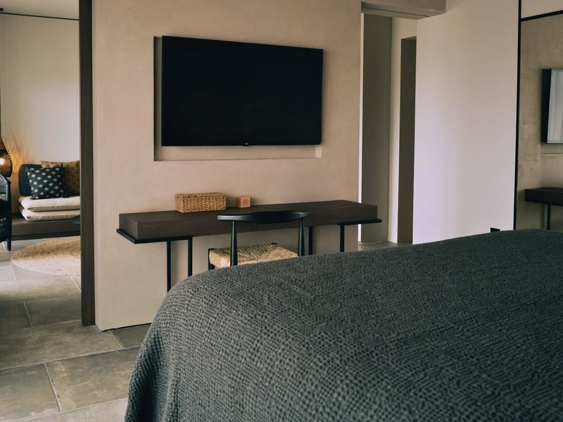 - Euphoria Junior Suite private pool (JSX1), Juniorsuite, im Hauptgebäude, Westseite, eingeschränkter Meerblick, Gartenblick, ca. 38 m², letzte Komplettrenovierung 2022, Gesamtanzahl der Räume in diesem Zimmertyp: 1, Aufteilung wie folgt: kombiniertes Wohn-/Schlafzimmer, 1 King Size Bett (190x200cm), Klimaanlage: ohne Gebühr, individuell regelbar, Fußboden: Fliesenboden, Safe: ohne Gebühr, Sofa, Kaffee-/Teezubereiter, Wasserkocher, Minibar: gegen Gebühr, Softdrinks: gegen Gebühr, Wasser: gegen Gebühr, alkoholische Getränke: gegen Gebühr, Minibarauffüllung: täglich, Telefon, Internet: WLAN/WiFi: ohne Gebühr, Fernseher: Flatscreen, im Wohnbereich, deutsches Programm, Sat-TV, Roomservice: täglich, gegen Gebühr, Reinigungsservice: täglich, ohne Gebühr, Dusche, WC, Bademantel: ohne Gebühr, Slipper: ohne Gebühr, Föhn, Kosmetikspiegel, Terrasse: mit Liegen, mit Private Pool