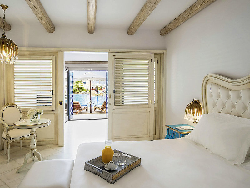 Bungalowzimmer (BU, ca. 28 qm), Klimaanlage, Minibar, TV (32 Zoll), WLAN, Safe. Bad/Dusche, WC, Föhn. Balkon/Terrasse, wahlweise mit Meerblick (BUM) oder mit Meerblick und privatem Jacuzzi (BUJ). Max. 3E+1K