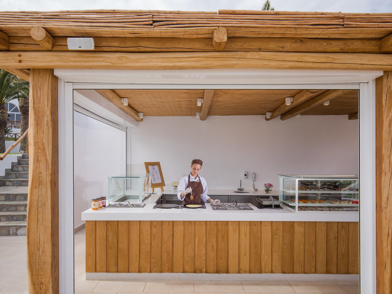 - Špecializovaná reštaurácia Taverna: Kuchyňa: grécka, stredomorská, à la carte, show cooking, nutná rezervácia na vyžiadanie, zdarma, zahrnuté v all inclusive, denne 8:00 - 11:00, denne 18:30 - 22:00, denne, s terasou, na pláži, detská stolička, potrebné je vhodné oblečenie.