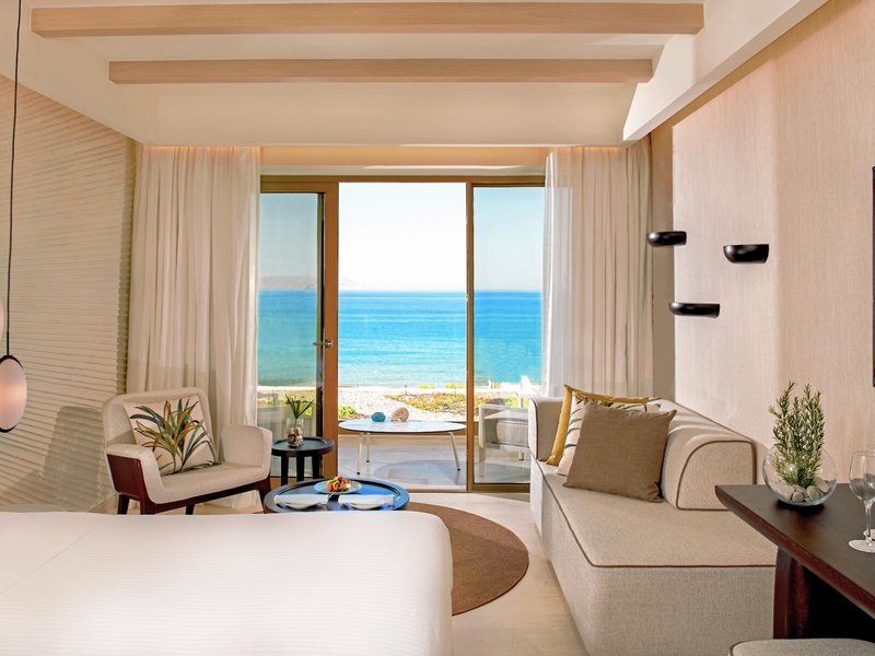 - Superior Double Sea Front (DZF1), Doppelzimmer, Nichtraucherzimmer, im Nebengebäude, erste Strandreihe, Meerblick, ca. 20 - 25 m², letzte Komplettrenovierung 2022, Gesamtanzahl der Räume in diesem Zimmertyp: 1, Aufteilung wie folgt: kombiniertes Wohn-/Schlafzimmer, 1 Schlafzimmer, 1 Doppelbett, 1 Schlafsofa, Babybett: Anfrage & Reservierung notwendig, Klimaanlage: ohne Gebühr, individuell regelbar, zentral gesteuert, kalt, warm, Safe: ohne Gebühr, Sofa, Schreibtisch, Nespressomaschine, Kaffee-/Teezubereiter, Wasserkocher, Minibar: Softdrinks, Wasser, alkoholische Getränke, Minibarauffüllung: täglich, Telefon, Internet: WLAN/WiFi: ohne Gebühr, Fernseher: im Schlafzimmer, Sat-TV, Roomservice: 24 Stunden, gegen Gebühr, Reinigungsservice, Dusche, Regendusche, WC, Bademantel, Föhn, Kosmetikspiegel, Balkon