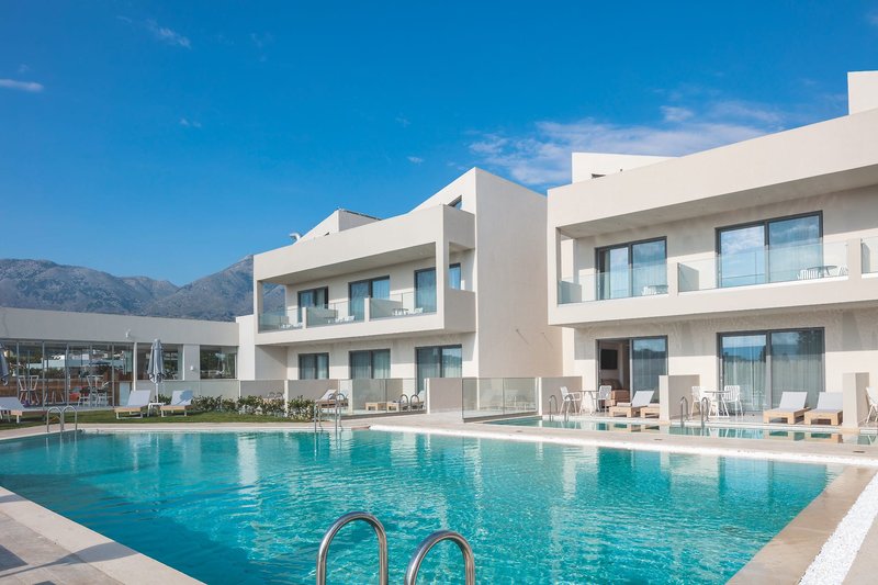 V dobre udržiavanom vonkajšom areáli sa nachádza bazén so slnečnou terasou a pool/snack bar (11:00 - 19:30). Plážové osušky sú k dispozícii za zálohu, ležadlá a slnečníky sú pri bazéne v cene a na verejnej pláži za poplatok.