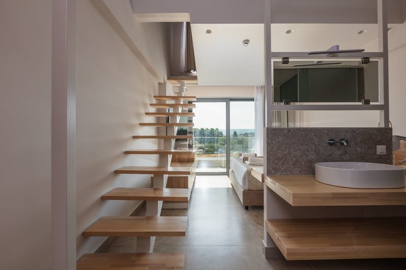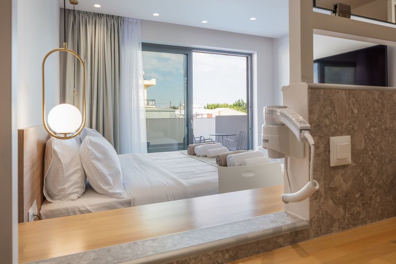 DZ Sup. Zdieľaný bazén Swim Up: Izby superior majú rovnaké vybavenie ako dvojlôžkové izby, plus terasu s ležadlami, slnečníkmi a priamym prístupom k zdieľanému bazénu (D2R).