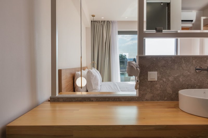 DZ Sup. Sharing Pool Swim Up: Die Superiorzimmer verfügen bei sonst gleicher Ausstattung wie die Doppelzimmer über eine Terrasse mit Sonnenliegen, Sonnenschirmen und direktem Zugang zum Sharing Pool (D2R).
