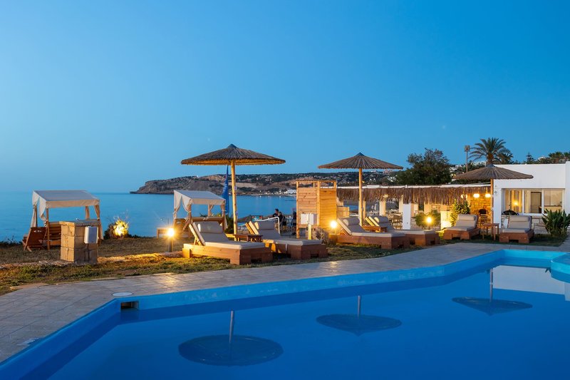 Ausstattung: Das Noho Hotel wurde als Teil des Azul Ecos für 2024 umfangreich renoviert. Die gesamte Anlage verfügt über 82 Zimmer, eine Lobby mit 24-h-Rezeption, Lounge mit Terrasse, Wi-Fi in der Lobby und ein Hauptrestaurant mit Außenterrasse (griechische und internationale Küche). In der Gartenanlage befinden sich zwei Swimmingpools mit Sonnenterrasse und eine Pool-/Snackbar sowie ein separater Pool mit Wasserrutschen (Mindestgröße 1,20 m). Sonnenliegen und Sonnenschirme sind am Pool inklusive, am Strand gegen Gebühr. Direkt am Strand befindet sich die hoteleigene Azul Beach Bar. Badetücher sind gegen Kaution erhältlich. Liegen und Schirme an der Azul Beach Bar inklusive.