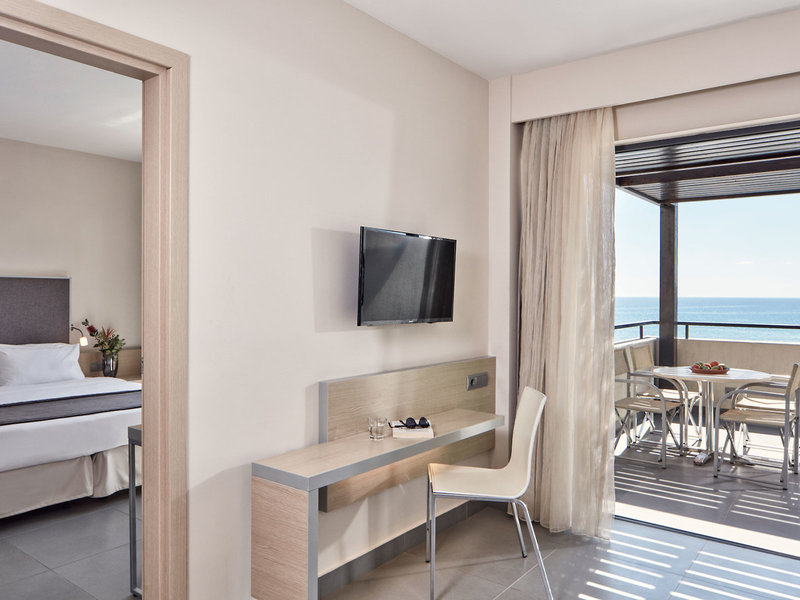 - Family Suite Superior Sea View (FZM4), Suite, Nichtraucherzimmer, Meerseite, Bergseite, Meerblick, ca. 46 m², Gesamtanzahl der Räume in diesem Zimmertyp: 2, Aufteilung wie folgt: kombiniertes Wohn-/Schlafzimmer, 1 Schlafzimmer, 2 Schlafsofas, Babybett: ohne Gebühr, bei All Inclusive inklusive, Anfrage notwendig, Reservierung nicht notwendig, Klimaanlage: individuell regelbar, Fußboden: Fliesenboden, Safe: ohne Gebühr, Schreibtisch, Kühlschrank: ohne Gebühr, bei All Inclusive inklusive, Kaffee-/Teezubereiter, Wasserkocher, Telefon, Internet: WLAN/WiFi: ohne Gebühr, bei All Inclusive inklusive, Fernseher: Flatscreen, deutsches Programm, Sat-TV, Reinigungsservice: täglich, ohne Gebühr, bei All Inclusive inklusive, Badewanne oder Dusche, WC, Bad durch Glaswand getrennt, Föhn, Kosmetikspiegel, Balkon: mit Sitzgelegenheit