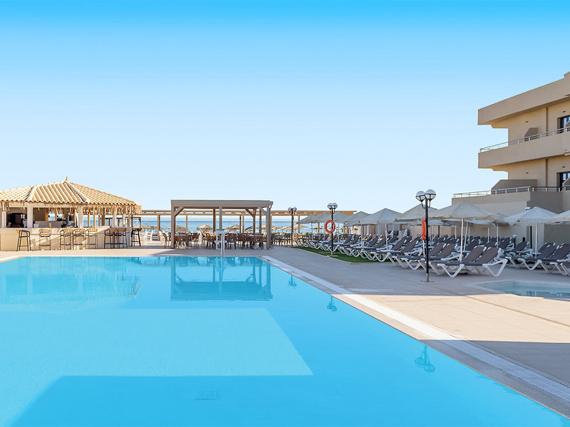 Direkt am weitläufigen Strand und in nächster Nähe der historischen Stadt Heraklion. Entdecken Sie die griechische Kultur im Palast von Knossos oder genießen Sie die Ruhe im schicken Poolbereich mit Außenpool und Sonnenterrasse, die Bar und der Meerblick laden zum relaxen und entspannen am Strand von Amoudara ein.