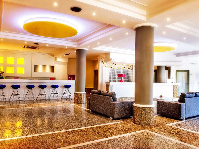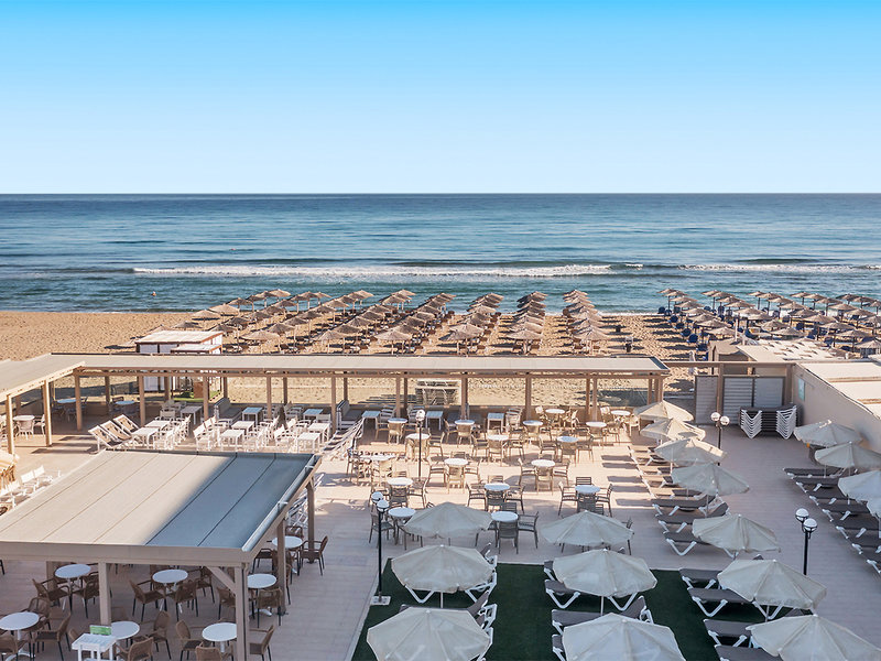 Ausstattung: Modern gestaltetes Hotel mit kleinem Garten, Swimmingpool, Sonnenterrasse mit Liegen und Schirme am Pool und am Strand inklusive, Poolbar. Empfangsbereich mit Rezeption, WLAN in der gesamten Hotelanlage, TV-Lounge, Restaurant. Landeskategorie: 4 Sterne, 136 Zimmer.