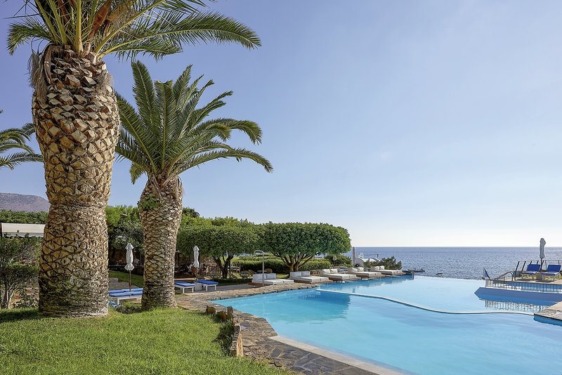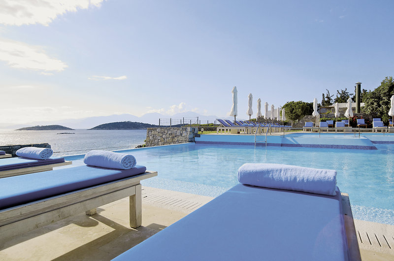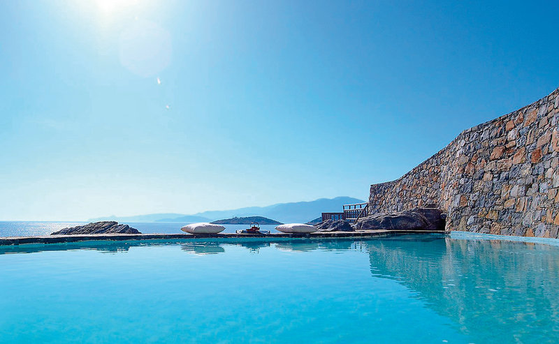 Das Hotel: Das exklusive Boutique Hotel liegt idyllisch auf einer Landzunge außerhalb des beliebten Ferienortes Agios Nikolaos direkt am Strand. Ein prächtiges Farbspiel, entstehend aus dem leuchtenden Weiß der Bungalows gepaart mit dem satten Grün der Gärten und dem Azurblau des Mittelmeeres, lässt das Resort wie ein kretisches Dorf wirken. Die ruhige Lage überzeugt insbesondere Gäste, die Diskretion wertschätzen und klassischen Luxus genießen möchten. Im St. Nicolas Bay wird mediterrane Architektur gekonnt mit zeitgemäßem Design verbunden. Der neue Unterkunftsbereich „Oliven & Meer“: Eingebettet in ein Meer aus Olivenbäumen, mit tadellosem Hafenblick und Meerblick auf die Mirabello-Bucht, sind die luxuriösen Suiten und Villen ideal für Familien mit kleinen Kindern. Mehrfach ausgezeichnet ist die authentisch griechische, internationale und asiatische Küche in den 4 Restaurants. Zudem verfügt das Hotel über einen ca. 25m langen Außenpool mit Süßwasser, einen Infinity-Meerwasserpool, Fitnessmöglichkeiten, einen Yoga-Raum, einen eigenen Parkplatz, ein Kiosk, eine Boutique und eine Art Gallerie. Ein Teenager-Club bietet Abwechslung mit u.a. Billard, Darts, Tischtennis und Mini-Fußball. Eine Play Station und eine TV-Lounge sind ebenfalls vorhanden. Auch ein halboffener Kinderspielplatz inmitten der Natur, ein Kinderclub (4-11 Jahre) und ein Kinderpool stehen ebenfalls zur Verfügung. Zum Ortszentrum sind es ca. 2 km, der Flughafen Heraklion ist ca. 60 km entfernt.