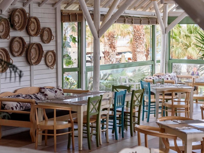 - Hauptrestaurant „Minos Main Restaurant“: Küche: griechisch, international, indisch, italienisch, mediterran, mexikanisch, regional, Fisch/Meeresfrüchte, Grillgerichte, Babynahrung: ohne Gebühr, Diätküche: ohne Gebühr, glutenfreie Gerichte: ohne Gebühr, Kinderbuffet: ohne Gebühr, Kindermenü: ohne Gebühr, koschere Gerichte: ohne Gebühr, vegetarische Gerichte: ohne Gebühr, vegane Gerichte: ohne Gebühr, Buffet, Showcooking, klimatisierbar, mit Terrasse, Kinderhochstuhl