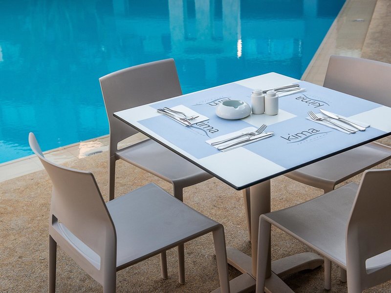 • Hlavná reštaurácia Kima restaurant: Kuchyňa: ázijská, grécka, talianska, typická pre krajinu, stredomorská, regionálna, ryby/plody mora, grilované jedlá, diétna kuchyňa, bezlepkové jedlá, detský bufet, detské menu, bezlaktózové jedlá, ľahké jedlá , vegetariánske jedlá, vegánske jedlá, bufet, show cooking, popoludňajší čaj, nie je nutná požiadavka a rezervácia, apríl - október, denne 7:30 - 23:00, klimatizované, pri bazéne, detská stolička, vhodné oblečenie