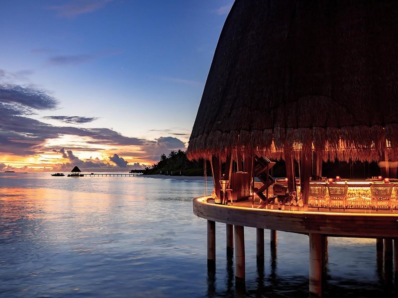 - Sunset Over Water Pool Villa (VIM3), Wasserbungalow, Nichtraucherzimmer, Meerblick, ca. 259 m², Gesamtanzahl der Räume in diesem Zimmertyp: 1, Aufteilung wie folgt: kombiniertes Wohn-/Schlafzimmer, 1 King Size Bett, Babybett: ohne Gebühr, Klimaanlage: ohne Gebühr, individuell regelbar, Safe: ohne Gebühr, Deckenventilator, Schreibtisch, Kaffeemaschine, Nespressomaschine, Wasserkocher, Minibar: gegen Gebühr, Telefon, Internet: WLAN/WiFi: ohne Gebühr, Fernseher: Flatscreen, im Schlafzimmer, deutsches Programm, Kabel-TV, DVD-Player, CD-Player, iPod-Docking Station, Roomservice: täglich, gegen Gebühr, Butlerservice: täglich, ohne Gebühr, Reinigungsservice: täglich, ohne Gebühr, Dusche, separate Dusche, Außendusche, Regendusche, Badewanne, WC, Bademantel: ohne Gebühr, Slipper: ohne Gebühr, Föhn, Kosmetikspiegel, Terrasse: mit Liegestühlen, mit Liegen, mit Sitzgelegenheit, mit Private Pool