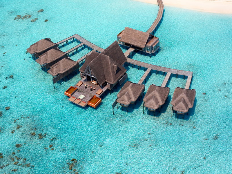 - Over Water Pool Villa (VIM1), Wasserbungalow, Nichtraucherzimmer, Lagunenseite, Meerblick, ca. 259 m², Gesamtanzahl der Räume in diesem Zimmertyp: 1, Aufteilung wie folgt: kombiniertes Wohn-/Schlafzimmer, 1 Schlafsofa, Babybett: ohne Gebühr, Klimaanlage: ohne Gebühr, individuell regelbar, Heizung: individuell regelbar, Safe: ohne Gebühr, Deckenventilator, Sofa, Schreibtisch, Minibar: gegen Gebühr, Telefon, Internet: WLAN/WiFi: ohne Gebühr, Fernseher: Flatscreen, deutsches Programm, Sat-TV, Kabel-TV, DVD-Player, CD-Player, iPod-Docking Station, Roomservice: täglich, gegen Gebühr, Butlerservice: täglich, ohne Gebühr, Reinigungsservice: täglich, ohne Gebühr, Dusche, Außendusche, Badewanne, WC, Bademantel: ohne Gebühr, Slipper: ohne Gebühr, Föhn, Terrasse: mit Sitzgelegenheit, mit Private Pool