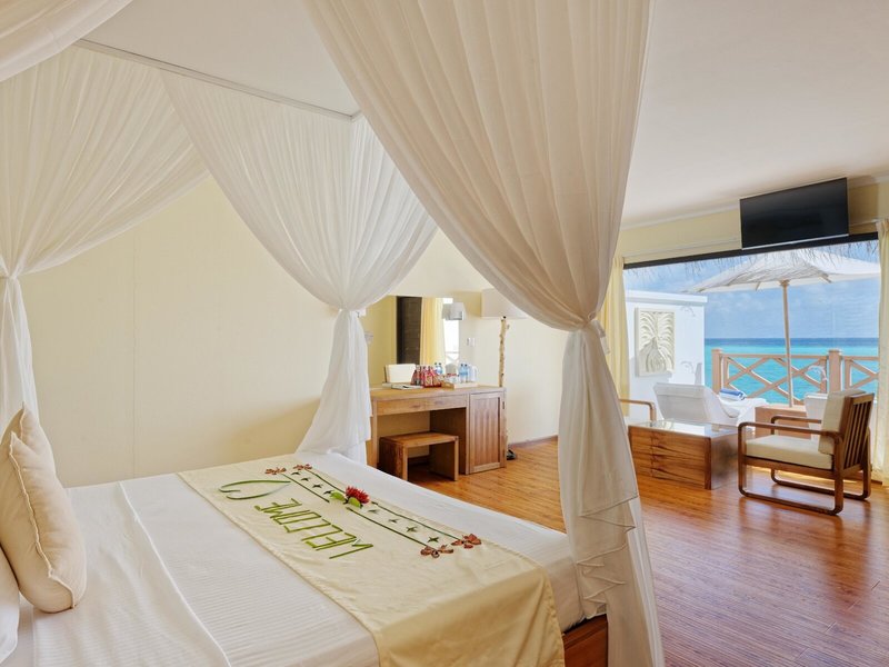 Um die natürliche Schönheit der Inseln nicht zu beeinträchtigen, kann es vorkommen, dass Balkongeländer oder Barrieren fehlen, die die Zimmer am Strand, die Terrassen der Wasserbungalows oder die öffentlichen Gehwege umgeben. Dadurch ist ein direkter Zugang zum Wasser oder Meer möglich. Reisende mit Kindern sollten vor der Buchung dieser Unterkunft sicherstellen, dass dies ihren Sicherheitsanforderungen entspricht.