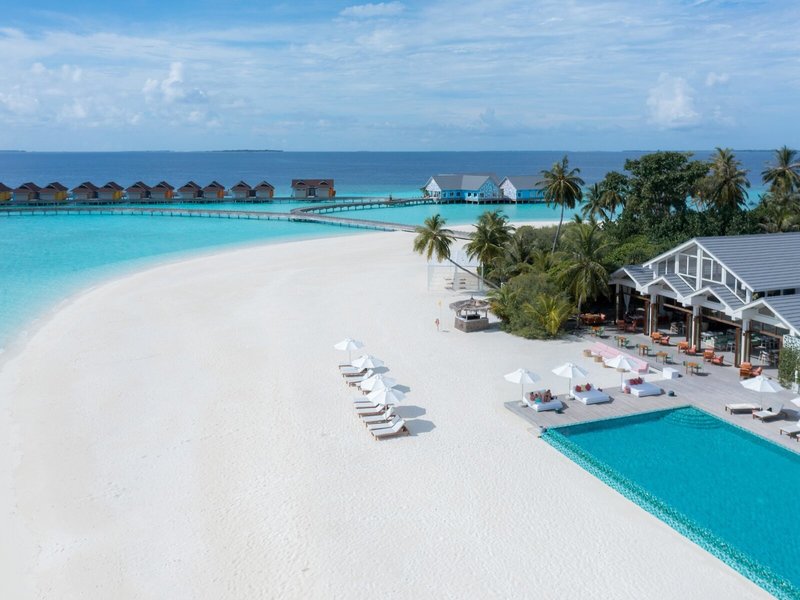 Poloha a okolie: Rezort sa nachádza medzi atolmi Baa a Raa na ostrove Huruvalhi. Ostrov je obklopený bielymi piesočnatými plážami, veľkou lagúnou a krásnym domácim útesom a meria iba 400 x 150 metrov. Slávny záliv Hanifaru na atole Baa (morská biosférická rezervácia UNESCO, známa najmä úchvatnými stretnutiami s mantami) je vzdialený len asi 30 minút (dostupný iba rýchloloďou). Transfery z/na letisko Malé sú zabezpečené hydroplánom.