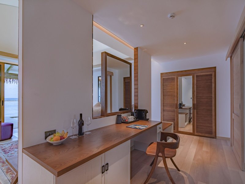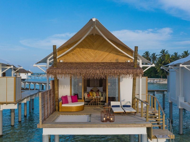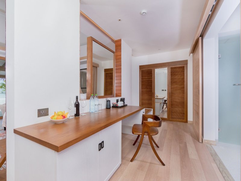 - Sunset Water Villa (BUM3), bungalov, morská strana, výhľad na more, výhľad na západ slnka, cca 85 m², posledná kompletná rekonštrukcia v roku 2019, posledná čiastočná rekonštrukcia v roku 2015, celkový počet izieb v tomto type izby: 1, rozloženie: kombinovaná obývacia izba/spálňa, 1 posteľ king, detská postieľka: bez poplatku, vyžiadanie a rezervácia nutná, klimatizácia: bez poplatku, január - december; sezónne; podľa počasia, individuálne nastaviteľný, trezor: bez poplatku, pohovka, písací stôl, kávovar, príslušenstvo na prípravu kávy/čaju, minibar: za poplatok, nealko nápoje: za poplatok, voda: za poplatok, alkoholické nápoje: za poplatok, občerstvenie: za poplatok, telefón, internet : WLAN/WiFi: bez poplatku, TV: plochá obrazovka, v spálni, satelitná TV, izbová služba: denne, za poplatok, upratovanie: denne, bez poplatku, sprcha, WC, župan: bez poplatku, Papuče: zdarma, fén, terasa: s ležadlami, s posedením