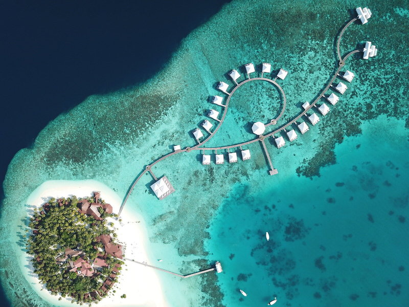 Eine Idylle auf einer kleinen, runden Insel mit feinem Sandstrand in den Weiten des Indischen Ozeans, die anspruchsvolle Gäste begeistert. Entspannen Sie in diesem beliebten Resort, dessen edle, weiße Wasservillen wie im Schwesterresort stilvoll im Blau des Meeres eingebettet sind.