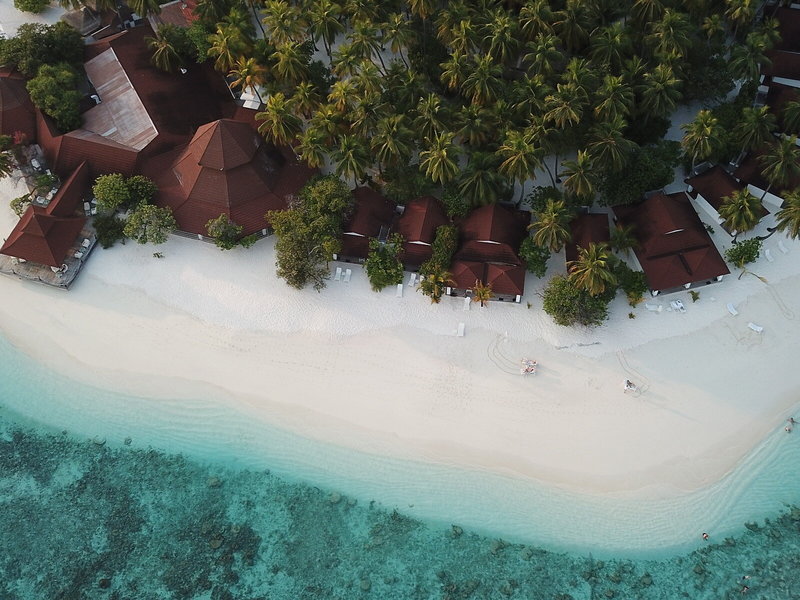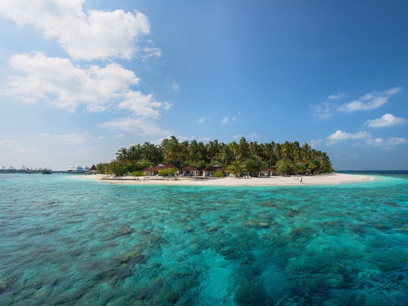 Lage: Im westlichen Teil des Süd-Ari-Atolls, umgeben von einer wunderschönen Lagune mit einem artenreichen Hausriff. Die kleine Insel (ca. 300 x 300 m) ist per Wasserflugzeug in ca. 25 Minuten zu erreichen.