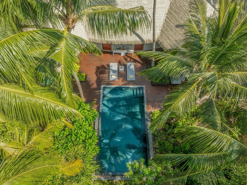 - Two Bedroom Beach Pool Villa (VIM4), Villa, erste Strandreihe, Meerseite, Meerblick, Blick auf Beach & Ocean, ca. 370 m², letzte Teilrenovierung 2023, Gesamtanzahl der Räume in diesem Zimmertyp: 2, Aufteilung wie folgt: bestehend aus 2 Doppelzimmern ohne Verbindungstür, 2 Schlafzimmer, 2 Einzelbetten, 1 Doppelbett, 2 Schlafsofas, 2 Zustellbetten, Babybett: ohne Gebühr, Anfrage & Reservierung notwendig, Klimaanlage: ohne Gebühr, Januar - Dezember, individuell regelbar, kalt, Fußboden: Fliesenboden, Safe: ohne Gebühr, Deckenventilator, Sitzecke, Sofa, Schreibtisch, Bügeleisen, Bügelbrett, Mikrowelle, Nespressomaschine, Kaffee-/Teezubereiter, Wasserkocher, Esstisch, Minibar: gegen Gebühr, Softdrinks: gegen Gebühr, Wasser: ohne Gebühr, alkoholische Getränke: gegen Gebühr, Snacks: gegen Gebühr, Minibarauffüllung: täglich, Telefon, Internet: WLAN/WiFi: ohne Gebühr, Fernseher: Flatscreen, im Wohnbereich, im Schlafzimmer, deutsches Programm, Sat-TV, Kabel-TV, Radio, iPod-Docking Station, Roomservice: täglich 24 Stunden, gegen Gebühr, Butlerservice: täglich 24 Stunden, ohne Gebühr, Reinigungsservice: täglich 09:00 Uhr - 14:00 Uhr und 18:30 Uhr - 22:00 Uhr, ohne Gebühr, Tageszeitung: ohne Gebühr, Sprachen: deutsch, englisch, spanisch, italienisch, französisch, russisch, polnisch, türkisch, Dusche, separate Dusche, Außendusche, Regendusche, Badewanne, WC, separates WC, Bademantel: ohne Gebühr, Slipper: ohne Gebühr, 2 Bäder, Bad durch Glaswand getrennt, Föhn, Kosmetikspiegel, Balkon oder Terrasse: mit Liegestühlen, mit Liegen, mit Sitzgelegenheit, mit Plunge Pool, mit Private Pool, mit Privat-Garten