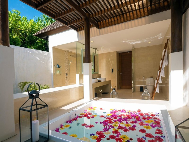 Poloha a okolie Rezort sa nachádza na krásnom útese s rozprávkovou lagúnou. Hostia tu nájdu pokoj a relax na 1,4 kilometra dlhej jemnej piesočnatej pláži alebo v exkluzívnych kúpeľoch, z ktorých niektoré sú postavené na koloch vo vode. Luxusné vily sú zasadené uprostred bujnej zelene priamo pozdĺž pláže a zaručujú absolútne súkromie. Transfer vnútroštátnym letom a následný transfer loďou.