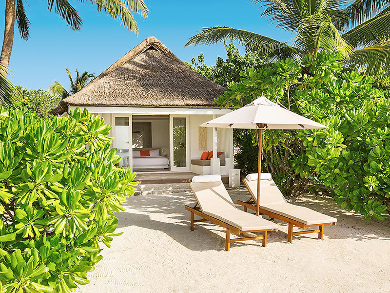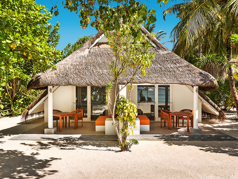 Ubytovanie: Plážový pavilón (BUB, cca 60 m²), vo východnej časti ostrova, klimatizácia, stropný ventilátor, trezor, telefón, TV, Wi-Fi, minibar (za poplatok), kávovar/čajník. Kúpeľňa/sprcha, WC, fén. Terasa, ležadlá, výhľad na more. Max. 2 dospelí + 1 dieťa